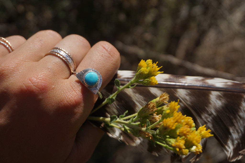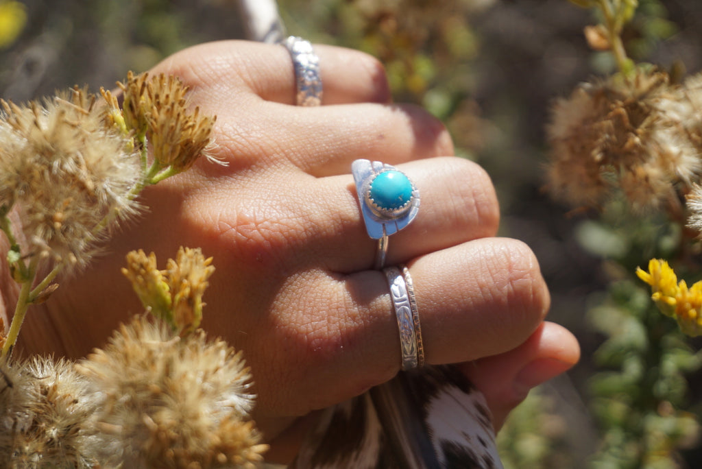 ‘Mini Feather Cut Ring #4 SIZE 7 // Sterling + Kingman Turquoise